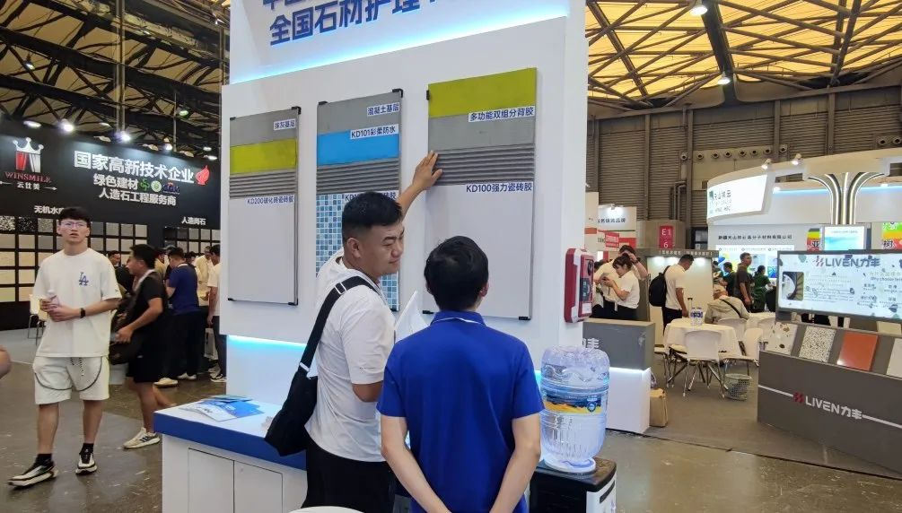 In addition, Keda’s unsaturated resin-based cloud stone adhesive and epoxy-based dry-hanging adhesive also attracted significant attention. These products boast broad application prospects in the home decoration sector: they not only meet modern households’ dual demands for aesthetics and practicality but also have won recognition and recommendations from many industry insiders due to their outstanding performance and stable construction quality. On-site visitors have stated that Keda’s dry-hanging adhesive products provide more possibilities for home decoration design and bring new development ideas to the industry.